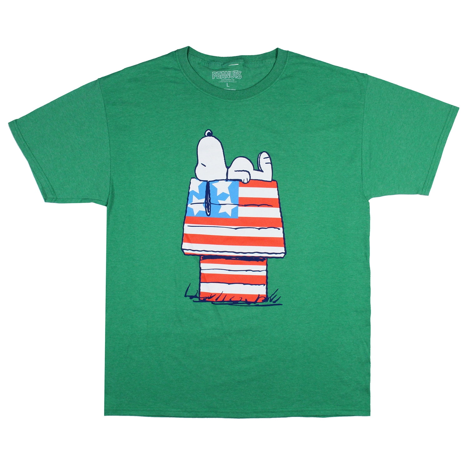 Peanuts Snoopy Men S American Flag Doghouse Sleeping Snoopy T Shirt Xl Green Walmart Com